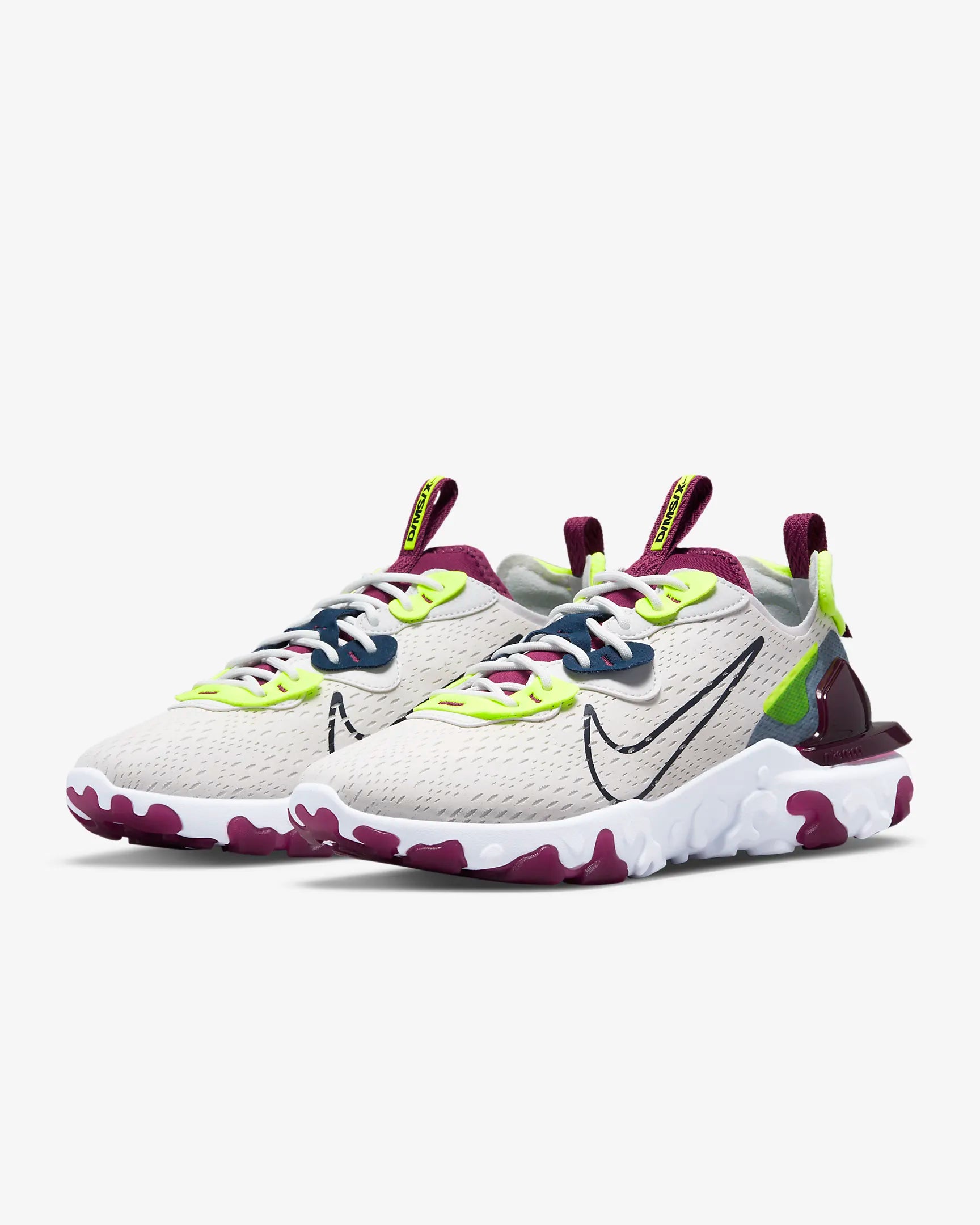 Plonge dans un monde de confort inouï avec la collection D/MS/X. Une fusion audacieuse de textures, de lignes saisissantes et de teintes vives s'invite dans ce modèle, directement inspiré par l'extravagance de nos rêves. La technologie React et la languette ultra-douce te promettent un confort qui défie toute logique. Découvre la Nike React Vision et laisse-toi emporter par un confort onirique.