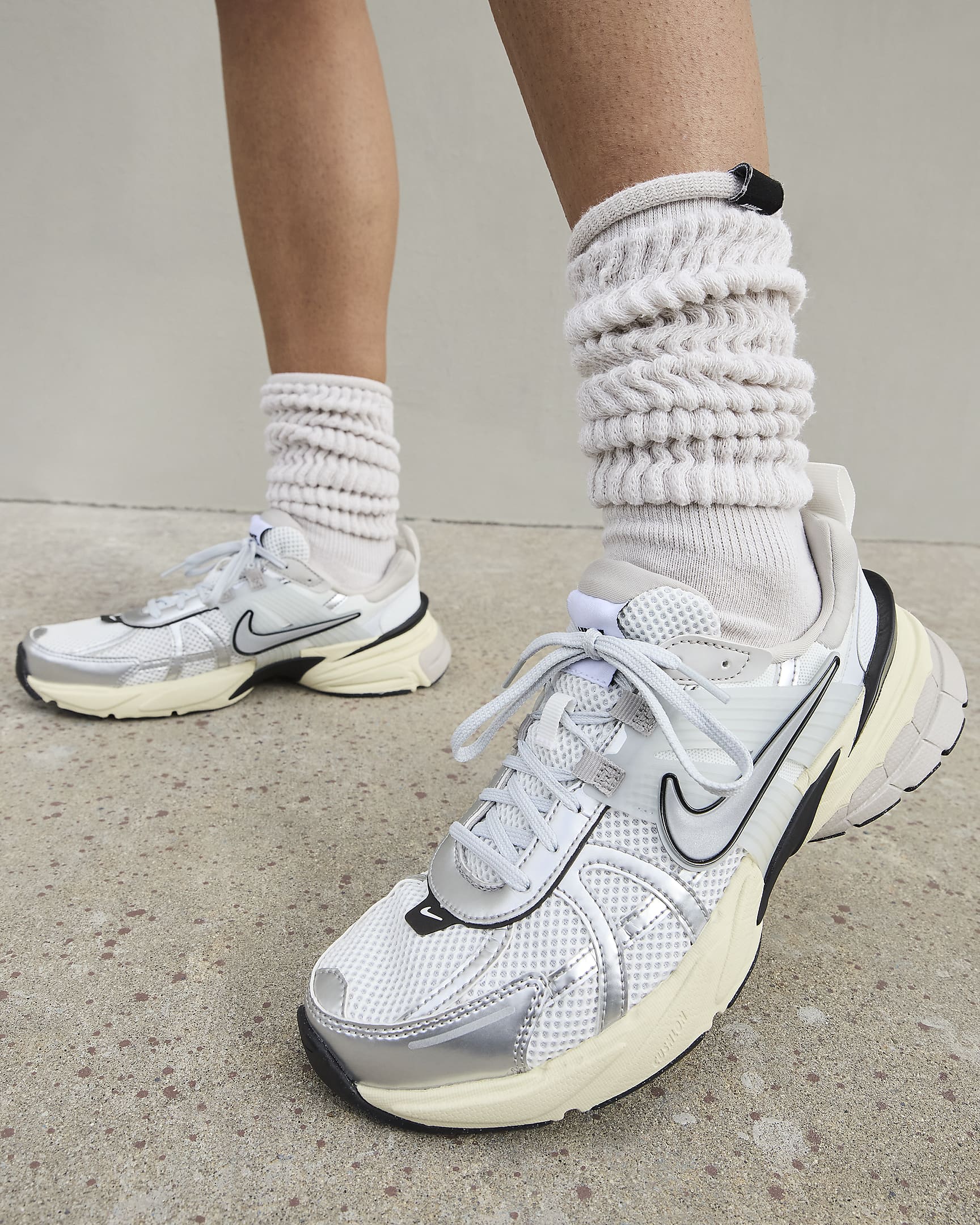- Détails en plastique translucide rappelant l'iconique Nike Vomero 5.
