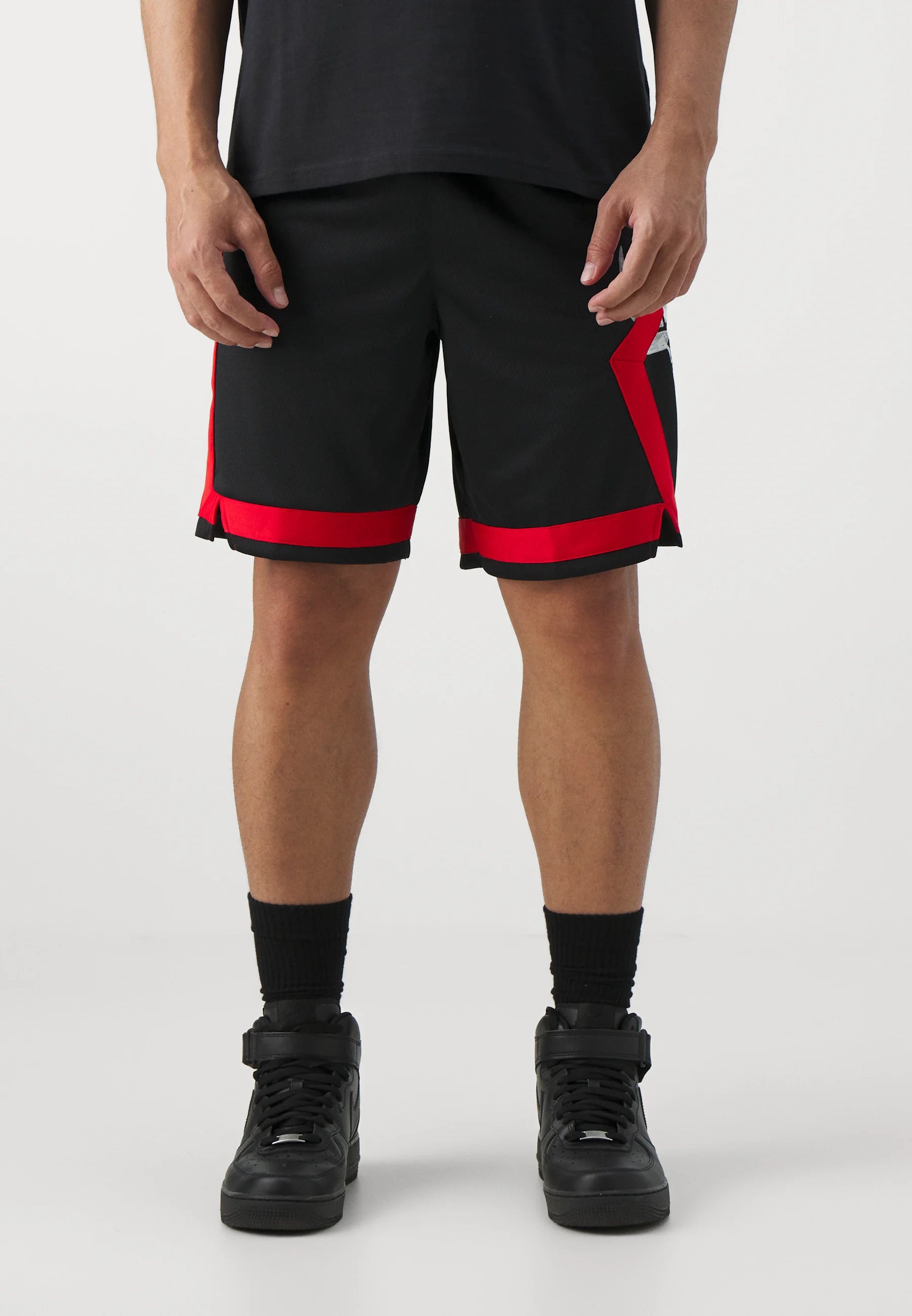 Le logo du short s'inspire des graphismes de terrain peints à la main dans le Chicago Stadium, mettant en valeur la personnalité unique de l'époque sportive. La double bande sur le panneau latéral droit, représentant les énormes poutres d'acier utilisées pour soutenir l'arène, est complétée par le diamant emblématique des Bulls à gauche. Les 4 étoiles trouvées sur la boucle de ceinture ont été ajoutées pour honorer le drapeau de la ville.