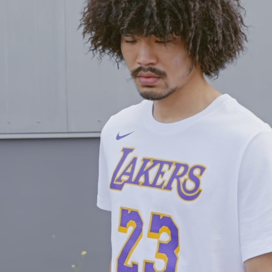 Affichez votre soutien pour les Los Angeles Lakers avec le T-shirt Jordan NBA LEBRON JAMES CITY EDITION TEE. Fabriqué en 100% coton pour un confort optimal, ce tee-shirt arbore un imprimé distinctif sur le devant. Avec son encolure ras du cou classique et sa coupe ajustée, il offre une silhouette élégante et moderne.